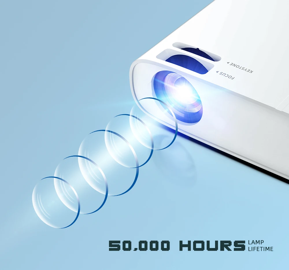 Our projector utilizes the bright LED light and lcd display technology, with 5800Lumens high brightness significantly provides over 60+% brightness than other mini projector