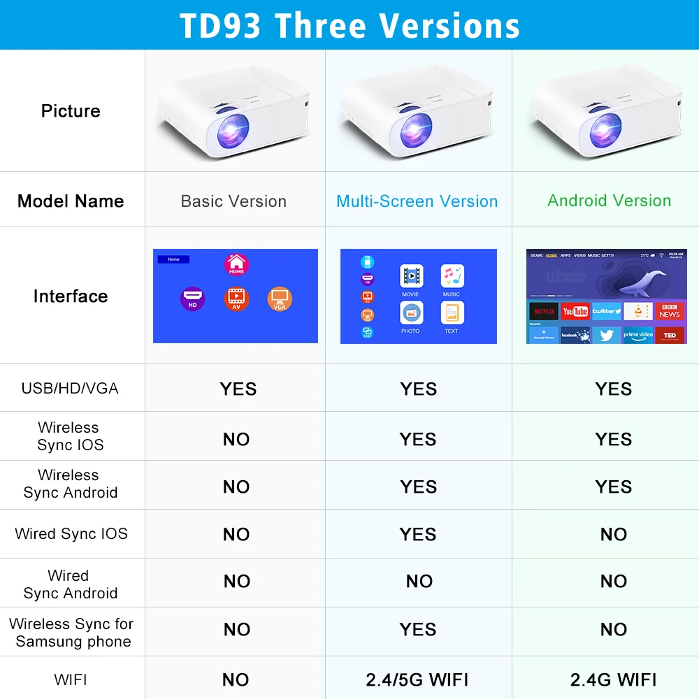 ThundeaL TD93 Projector 5G WiFi Full HD 1080P Projector Big Screen Proyector 3D Home Theater Smart Portable Video LED Beamer
