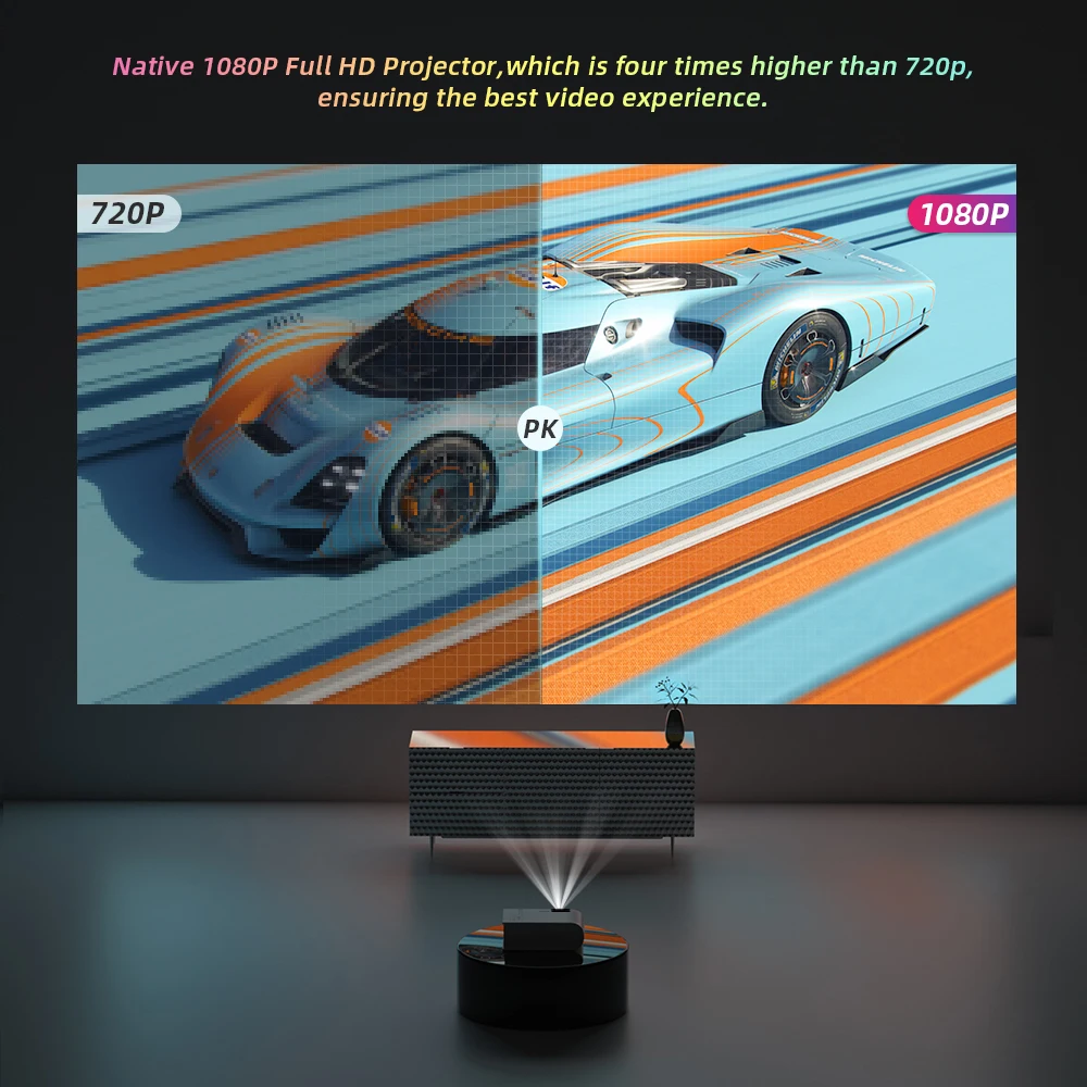 Native 1080P Full HD Projector,which is four times higher than 720p, ensuring the best video experience